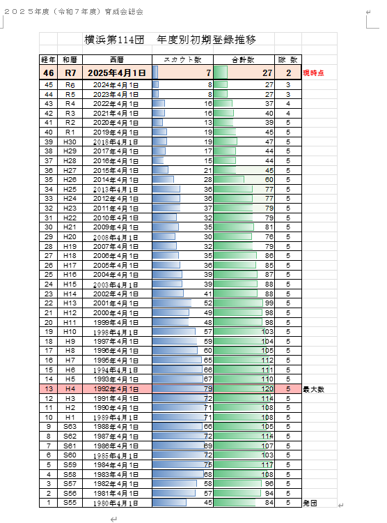 横浜第114団は、団の発足が1980年(S55年)で、46年になります。